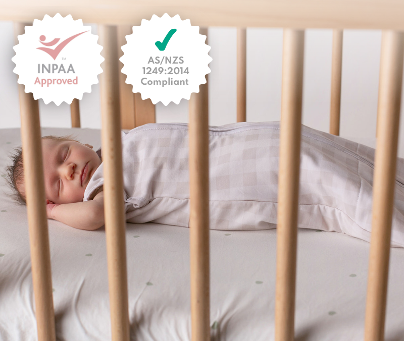 Yes. The range meets AS/NZS 1249:2014 sleepwear safety requirements and is independently approved by INPAA. Always follow safe sleep guidance from Australian experts. The Raising Children’s Network of Australia has resources regarding sleep safety.