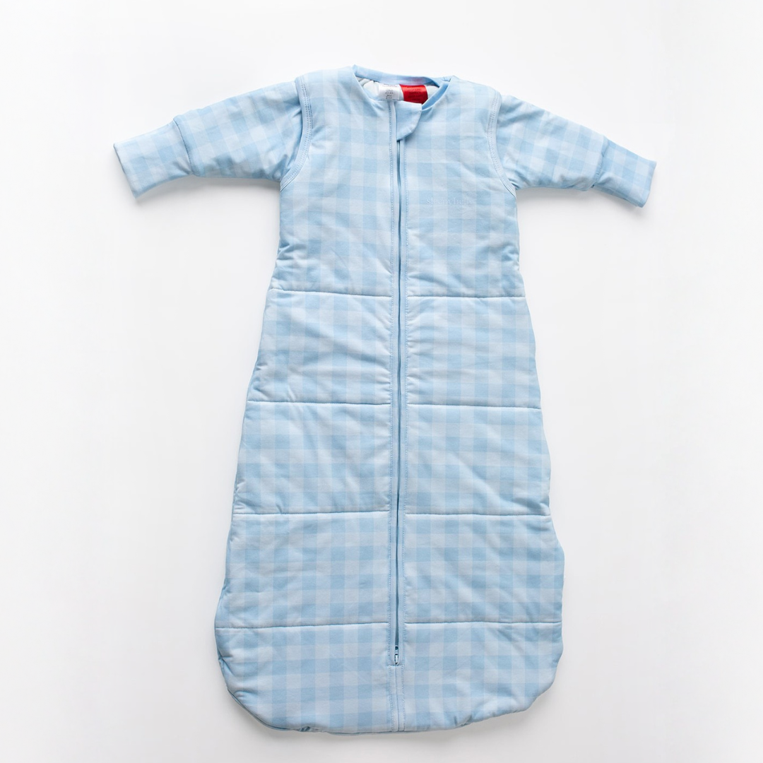 Use sleeves to match the room, not a fixed rule. In cooler rooms, keep sleeves on. In warmer rooms, take sleeves off. Check your baby’s chest or the back of the neck to judge comfort, warm is right, hot or sweaty means remove a layer. Follow TOG guidance, lower TOG for warm weather and higher TOG for cool weather.
